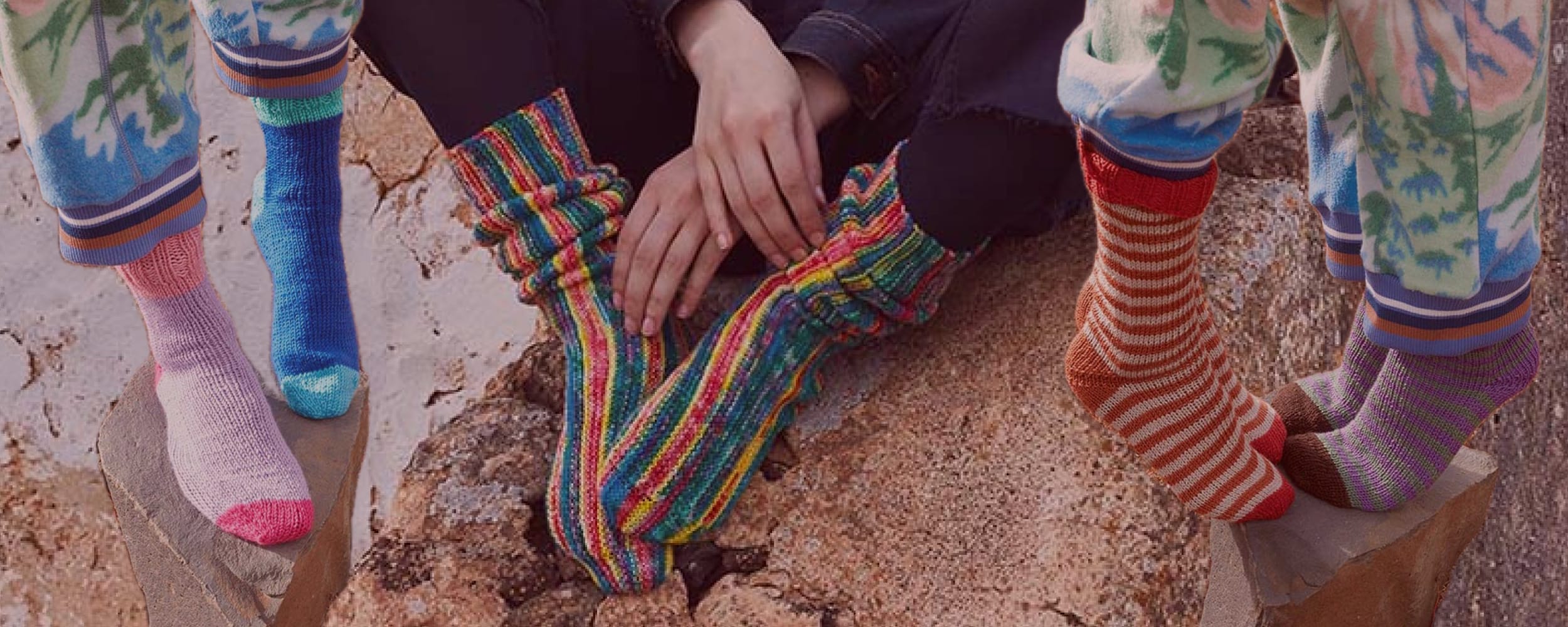 Entdecke Anleitungen, Wollen, Zubehör und Publikationen rund ums Socken-Stricken.