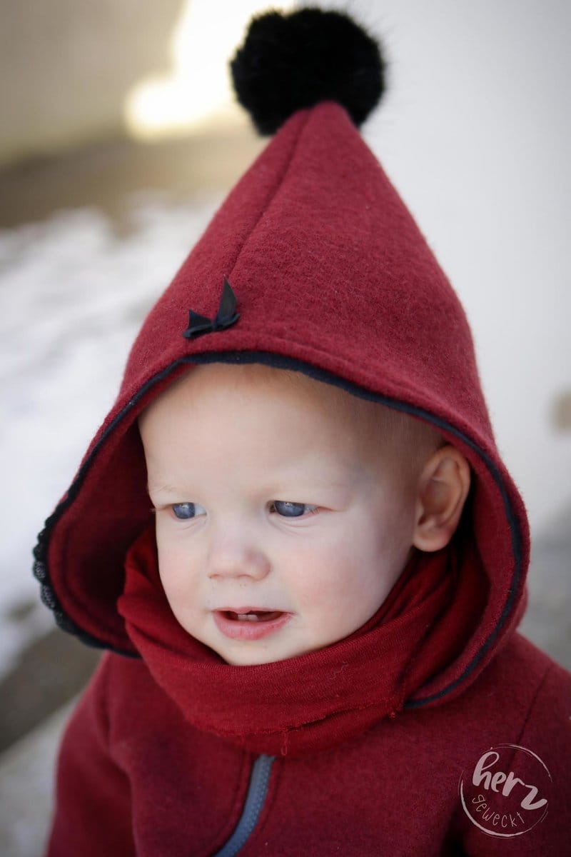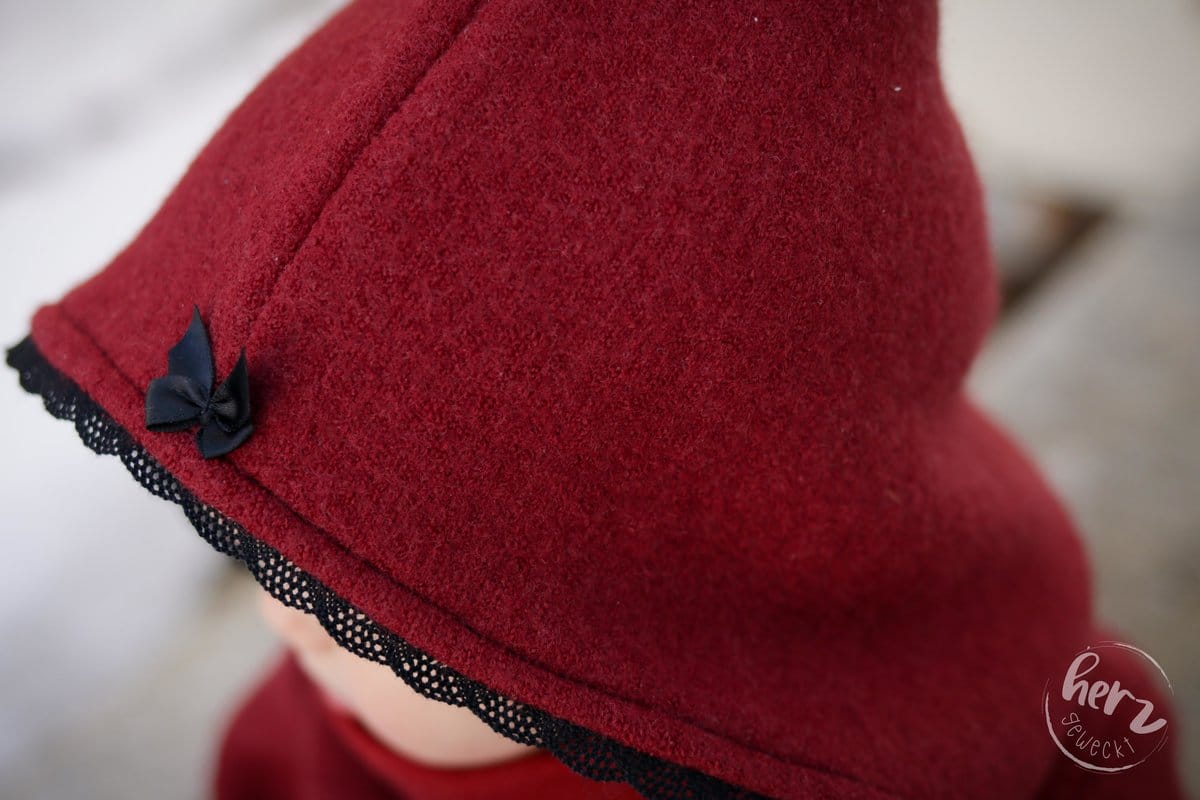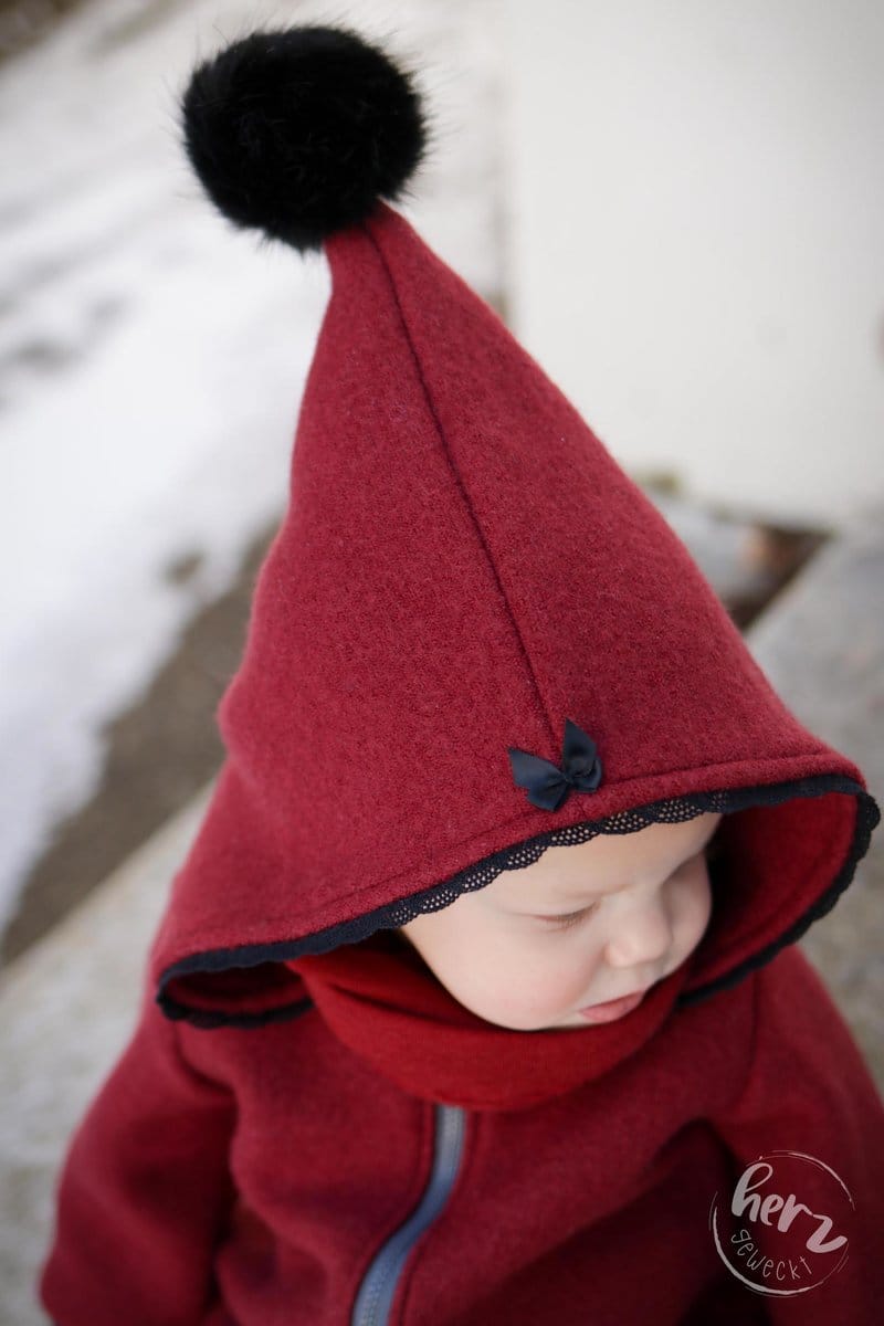 Hach und ich musste ja den Walkanzug schon noch etwas pimpen (natürlich nur soweit, dass mir die wertvollen Eigenschaften erhalten bleiben). Spitze und ein Kustfellbommel gehen immer. Und ist die Zipfelkapuze nicht unglaublich niedlich? Ich glaube fast, ich werde daran noch ein kleines Glöckchen anbringen und wenn Julie dann davon wackelt, immer ein Klimpern zu hören ist.