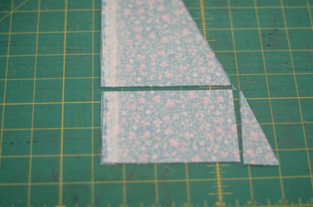 Bevor wir mit Nähen loslegen hier kurz eine Skizze des Schnittmusters (bei offener Stofflage): Rechts wird eine schräge Ecke genäht, dies gibt den Zipfel, den man danach durch den Ring zieht (Punkt A). Links (Punkt B) werden die Falten gelegt, damit das Bäbi Platz hat zum drin liegen, und um den Ring zu befestigen mit einem extra Stück Stoff (aus dem Rest, den wir hier rechts beim grauen Dreieck rausschneiden). Wie du siehst, gibt es so praktisch keinen Abfall – ein richtiges Zero-Wast Projekt also!