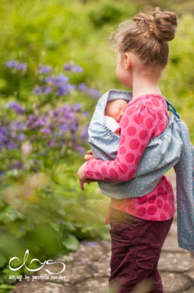 Kleine Mamis und Papis wollen doch einfach oft ihre Puppen mit sich herumtragen. Meine Kinder zumindest und meistens ist es meine Tochter, die ihre Puppe immer mit dabei haben möchte. Egal ob beim Malen, Bücher anschauen oder Trampolin springen. Ihre Puppe ist dabei.