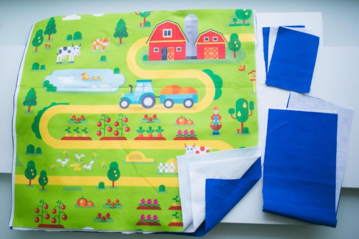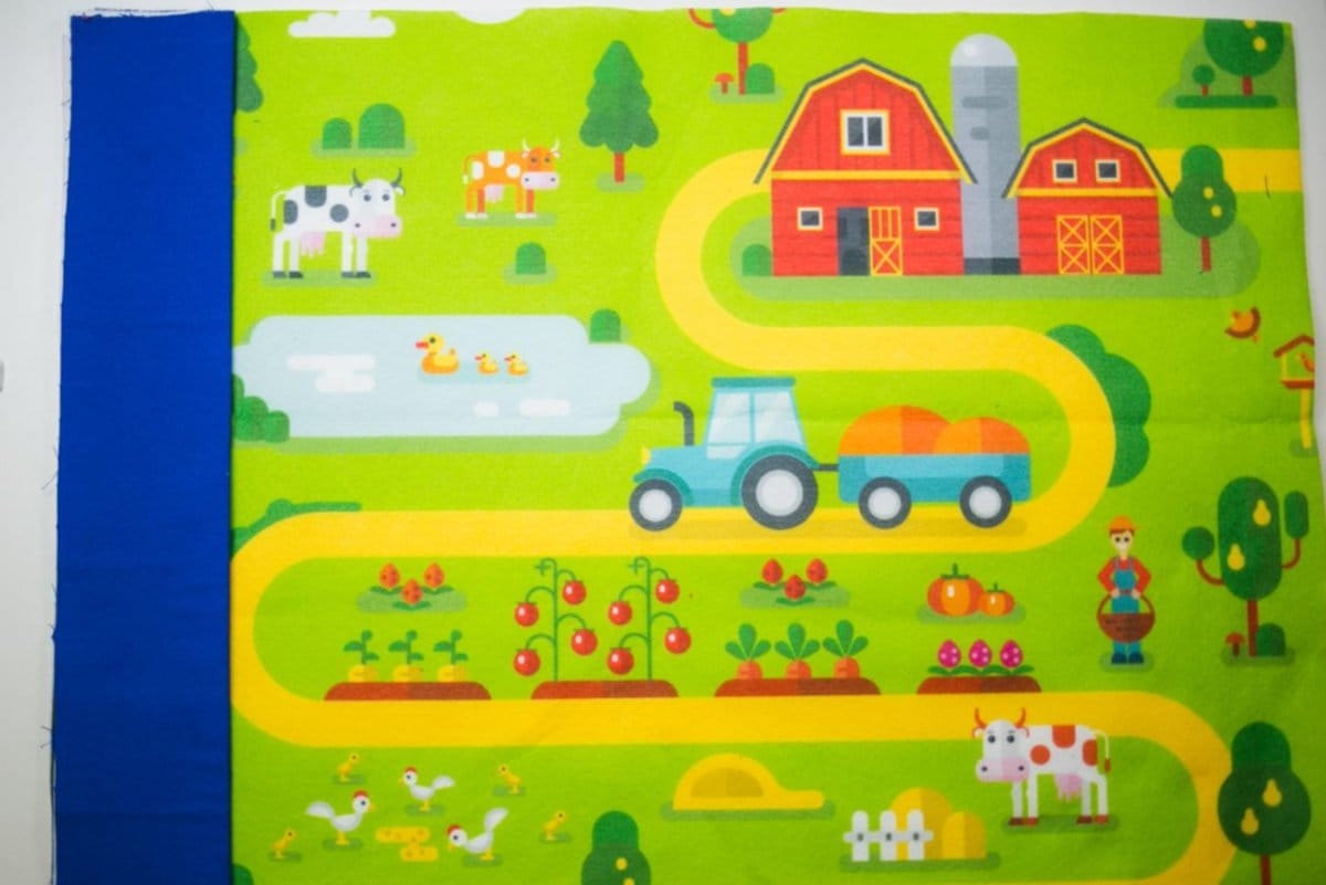 In meinem Beispiel zeige ich euch einen Bauernhofspielteppich, bei dem ich den tollen Spielfilz in Kombination mit Canvas, beides von Stoffwald, vernäht habe. Aber wenn ihr gerne appliziert/ stickt und eurer Kreativität freien Lauf lässt, wären auch eine Unterwasserwelt, ein glitzeriges Feenland, ein Königreich oder ein Märchenwald u.v.m. denkbar……..