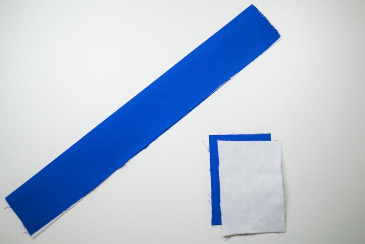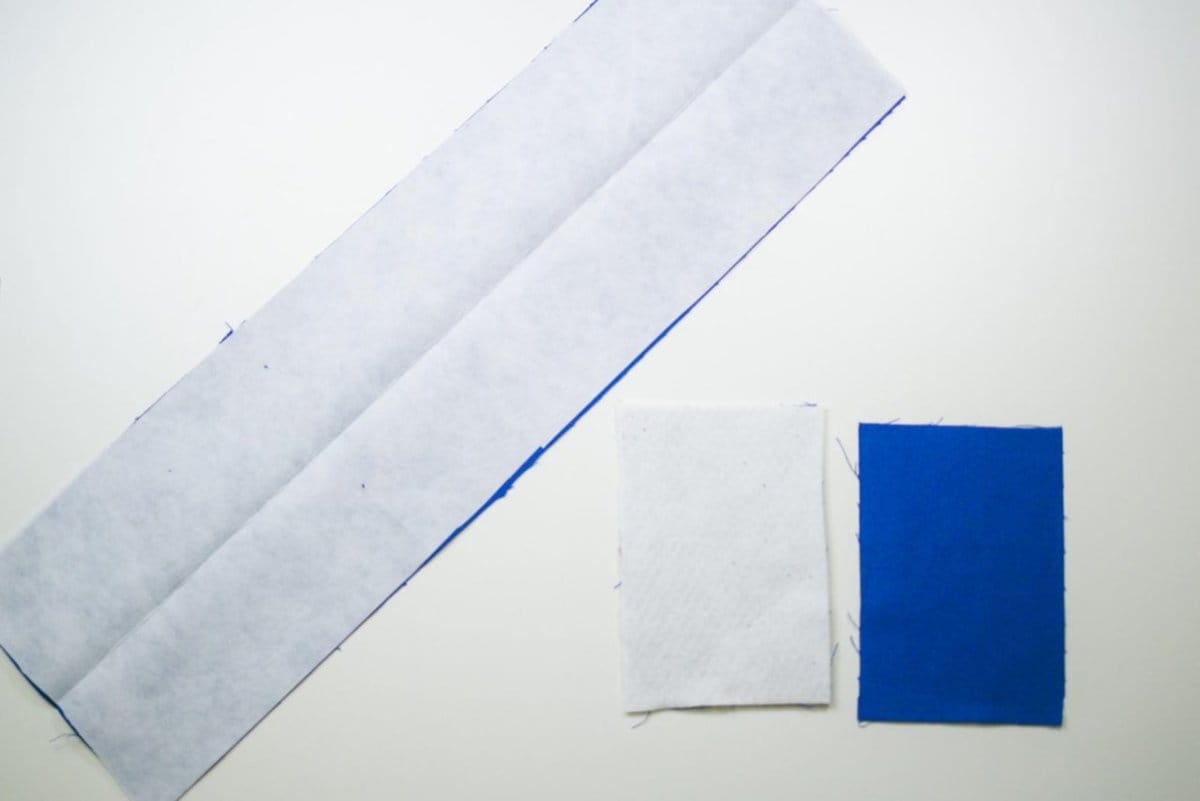 Für die «Verschlussklappe»: 2 Mal ein Rechteck vom Aussenstoff sowie einmal aus Volumenvlies, ca. 18 x12 cm