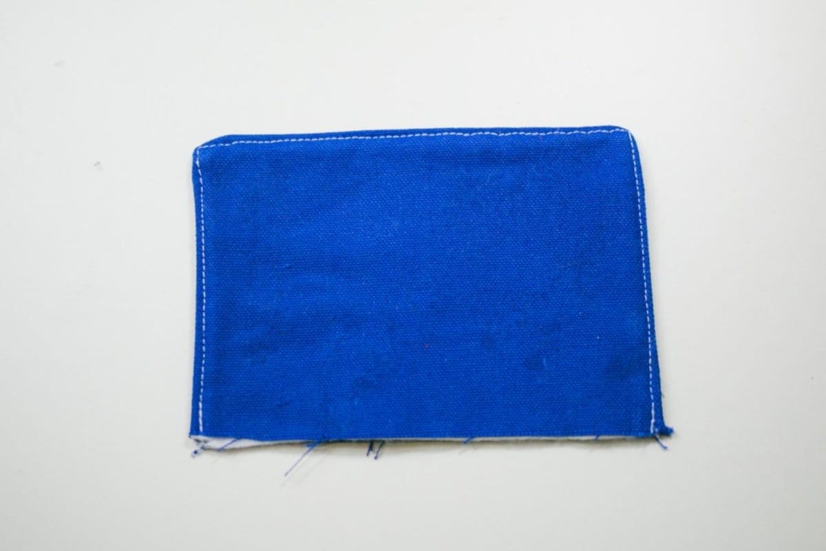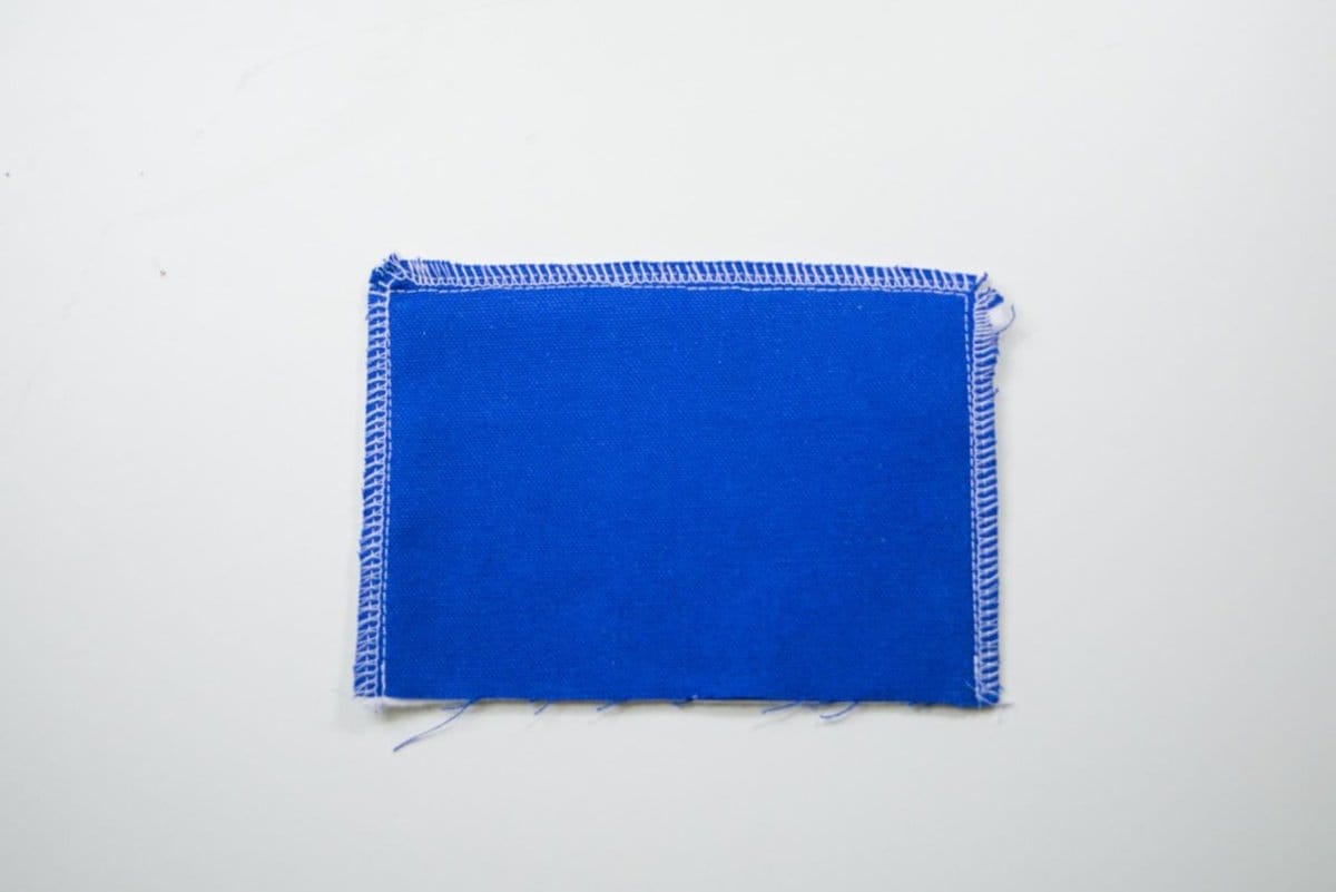 Nimm nun die beiden Verschlussklappenteile zur Hand und nähe sie rechts auf rechts an 3 Seiten zusammen. Ich habe den Canvas mit der Nähmaschine zusammengenäht und anschliessend mit der Overlock versäubert. Die untere Seite bleibt offen!
