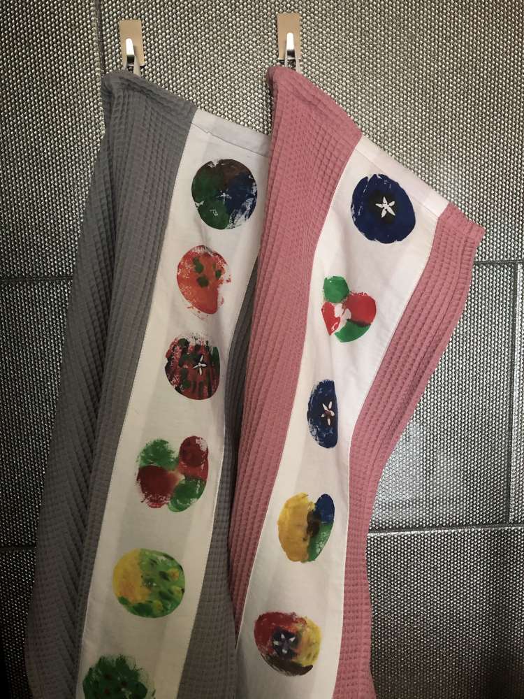 So, das hat auf jeden Fall Spass gemacht – und das Ergebnis gefällt mir prima! Meine Kinder waren begeistert – nur verschenken wollten sie die schönen Tücher nicht. Macht nix: haben halt wir schöne Küchentücher!