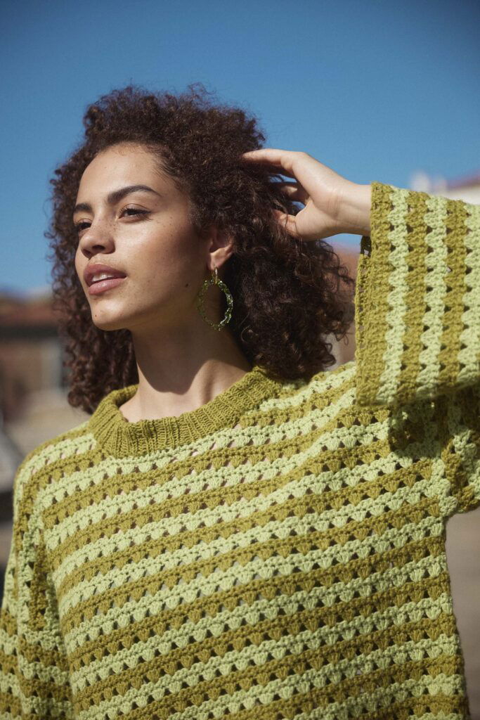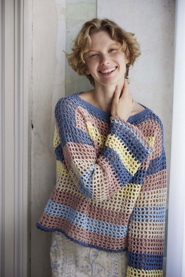 FEAST OF STITCHES is a celebration of color, texture, and the joy of the handmade. With its playful stripes and relaxed fit, this crochet sweater invites you to savor every stitch — a feast for your hands and your eyes.