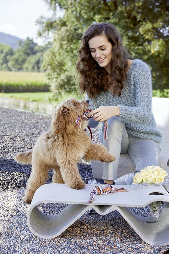 Strickanleitung in den Sprachen DE, FR, NL, EN.