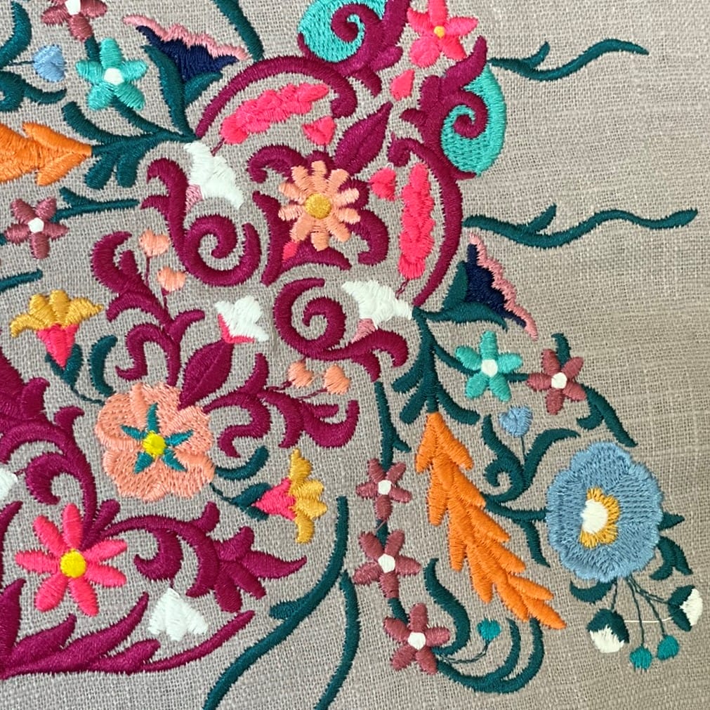 Auf dem feinen Leinenstoff kommt das Motiv prima zur Geltung. Und die Stickdatei war derart super aufgebaut, dass es das Stickmotiv überhaupt nicht verzogen hat und der Stoff auch nach dem Sticken noch 100% glatt war. Einfach super!