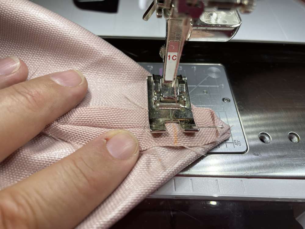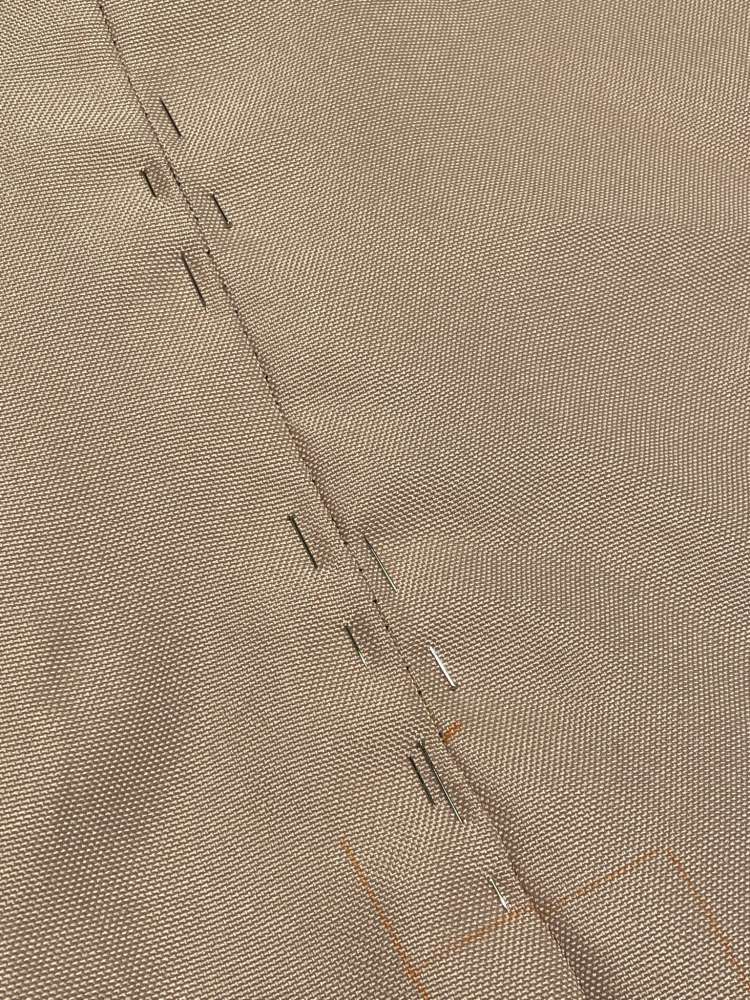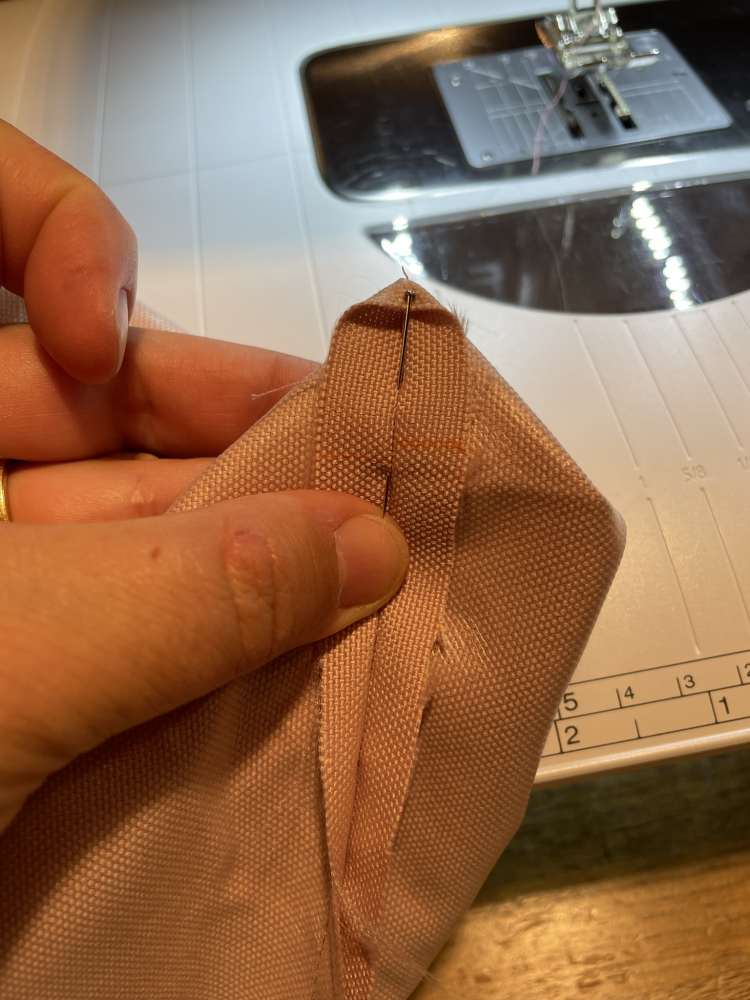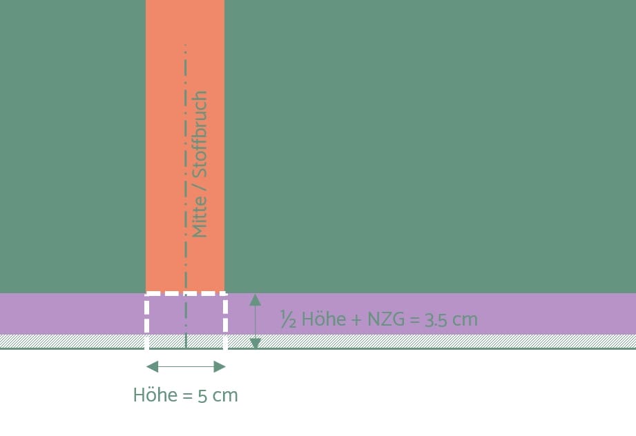 Hier wurde die Ecke in der Mitte, beim Stoffbruch, markiert.