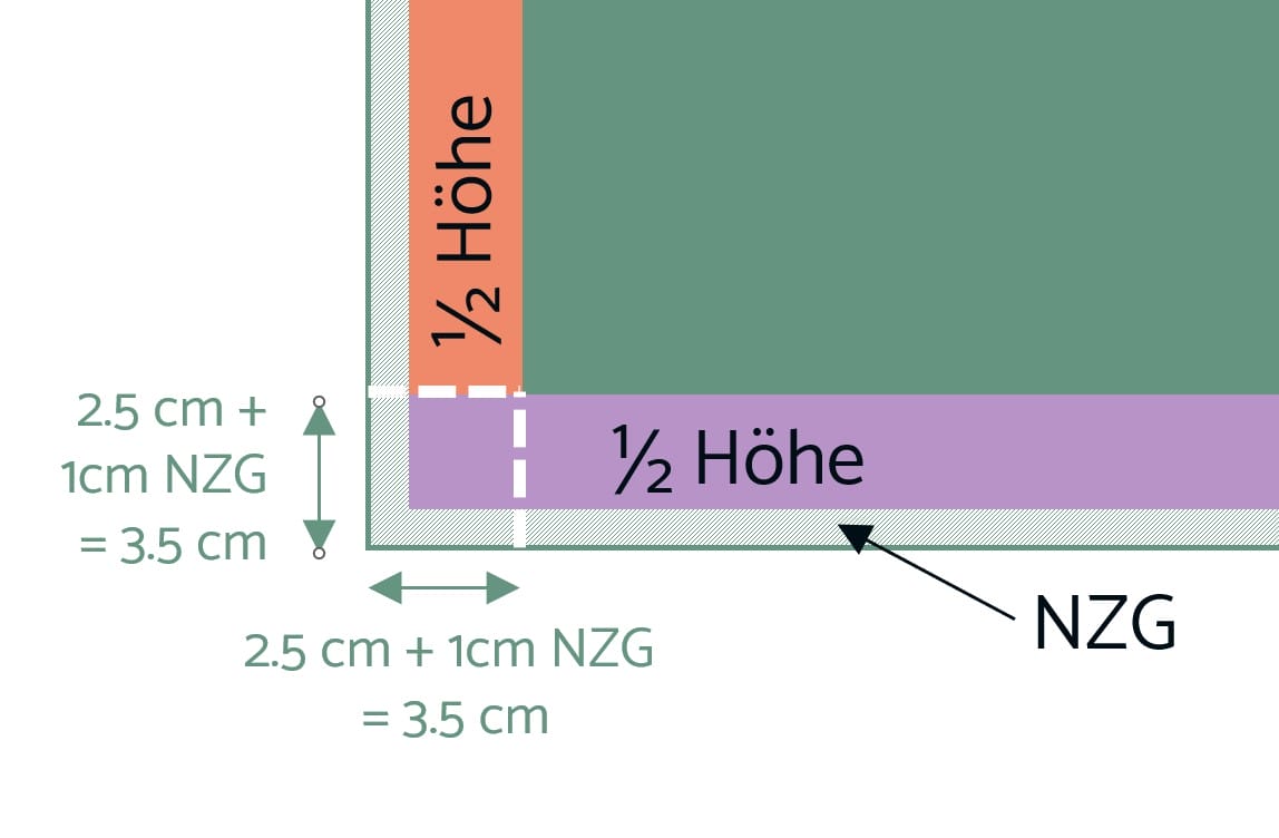 Als nächstes musst du die Markierungen für die Ecken einzeichnen. Diese sind in der Mitte, dort wo der Stoff gefaltet wird, so tief wie die Höhe des Kissens plus Nahtzugabe. An den äusseren Ecken die Hälfte. Ich versuch es zu illustrieren: