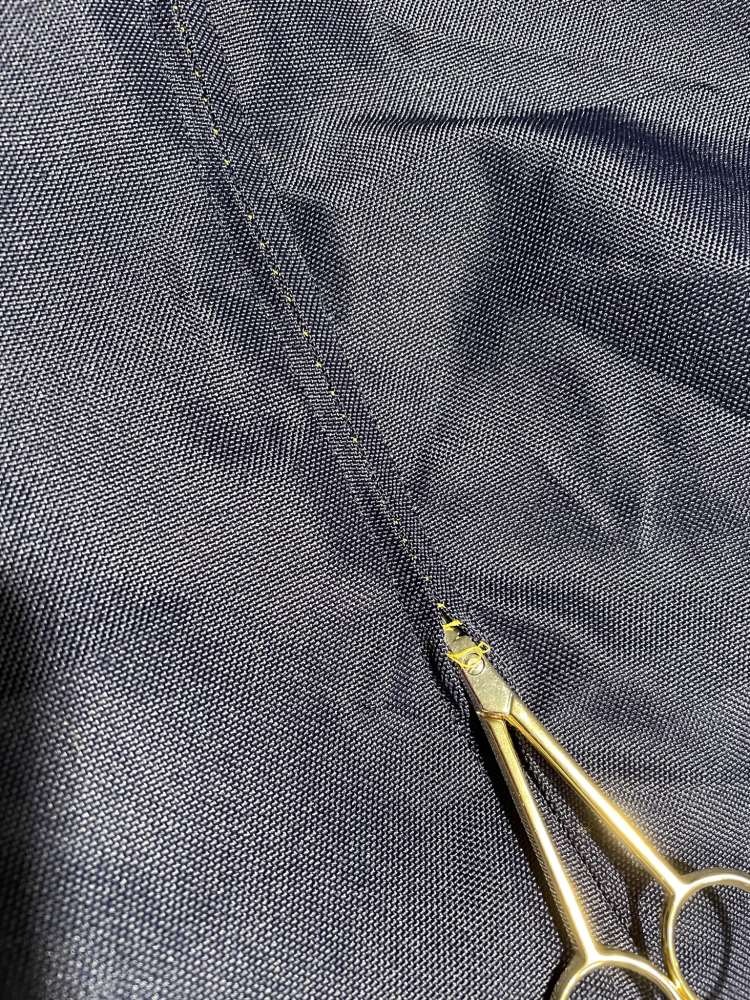 Nun kannst du die Nahtzugabe vorsichtig (bei Polyester vor allem NICHT HEISS!) auseinanderbügeln und den Reissverschluss aufstecken.