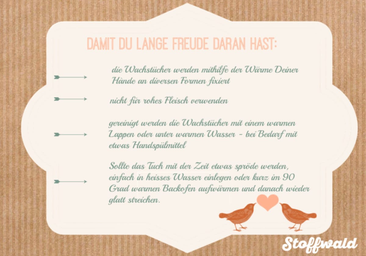 Freebie: Eine Karte mit Tipps und Pflegehinweisen für Beeswraps zum gratis ausdrucken