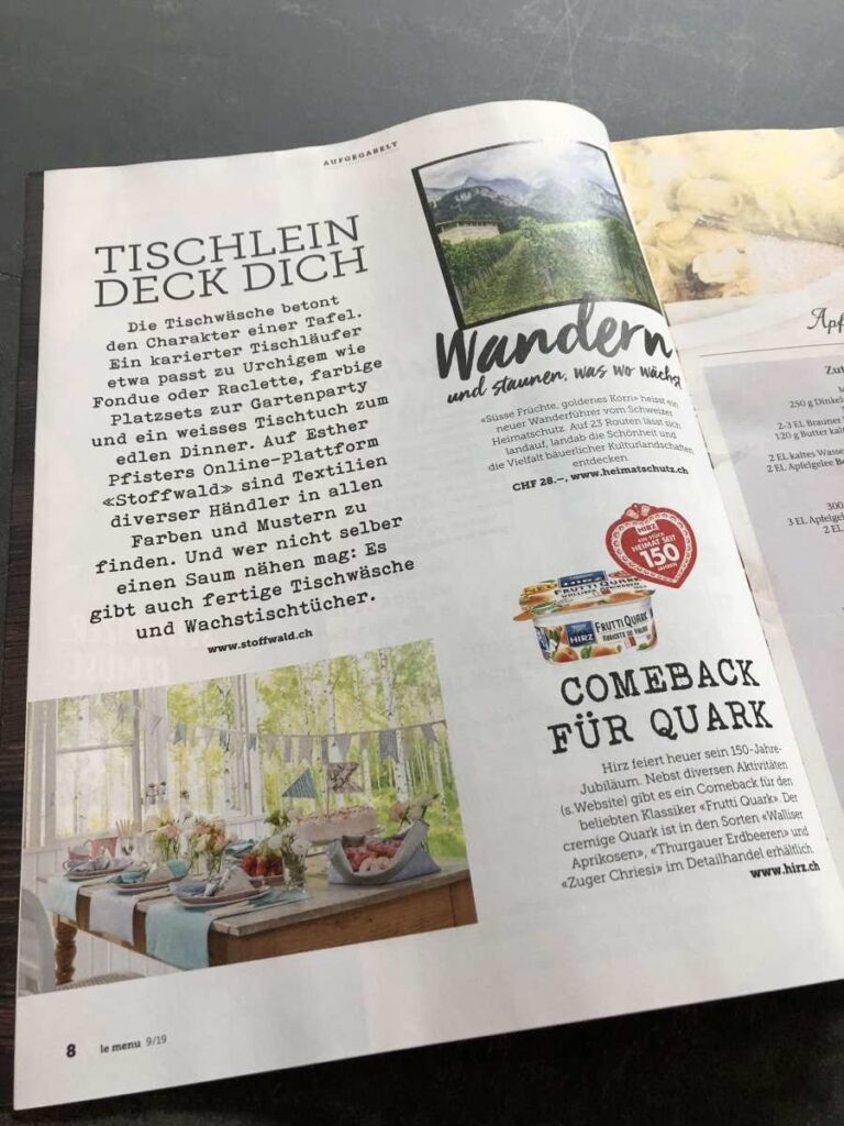 Tischlein deck dich! - Artikel im "Le Menu" vom 21.8.2019