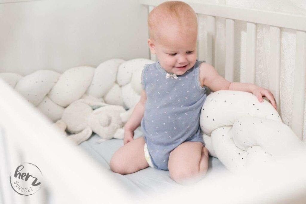 Stylische Bettschlange nähen aus Jersey Blogartikel von Debbie von herzgeweckt. Schon lange wollte ich für's Babybett eine neue Bettschlange...