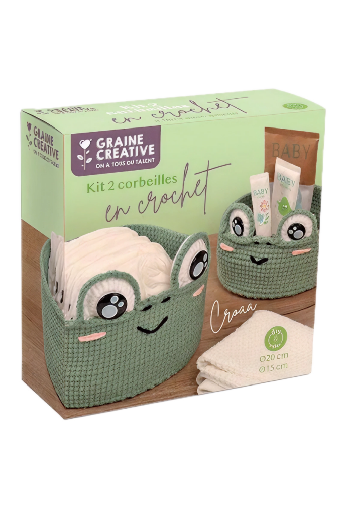 Ein besonders weiches Set, mit dem du 2 Häkelkörbchen mit Holzboden herstellen kannst. Darin kannst du die kleinen Sachen der Kinder oder Spielzeug aufbewahren und gleichzeitig einen dekorativen Akzent setzen.