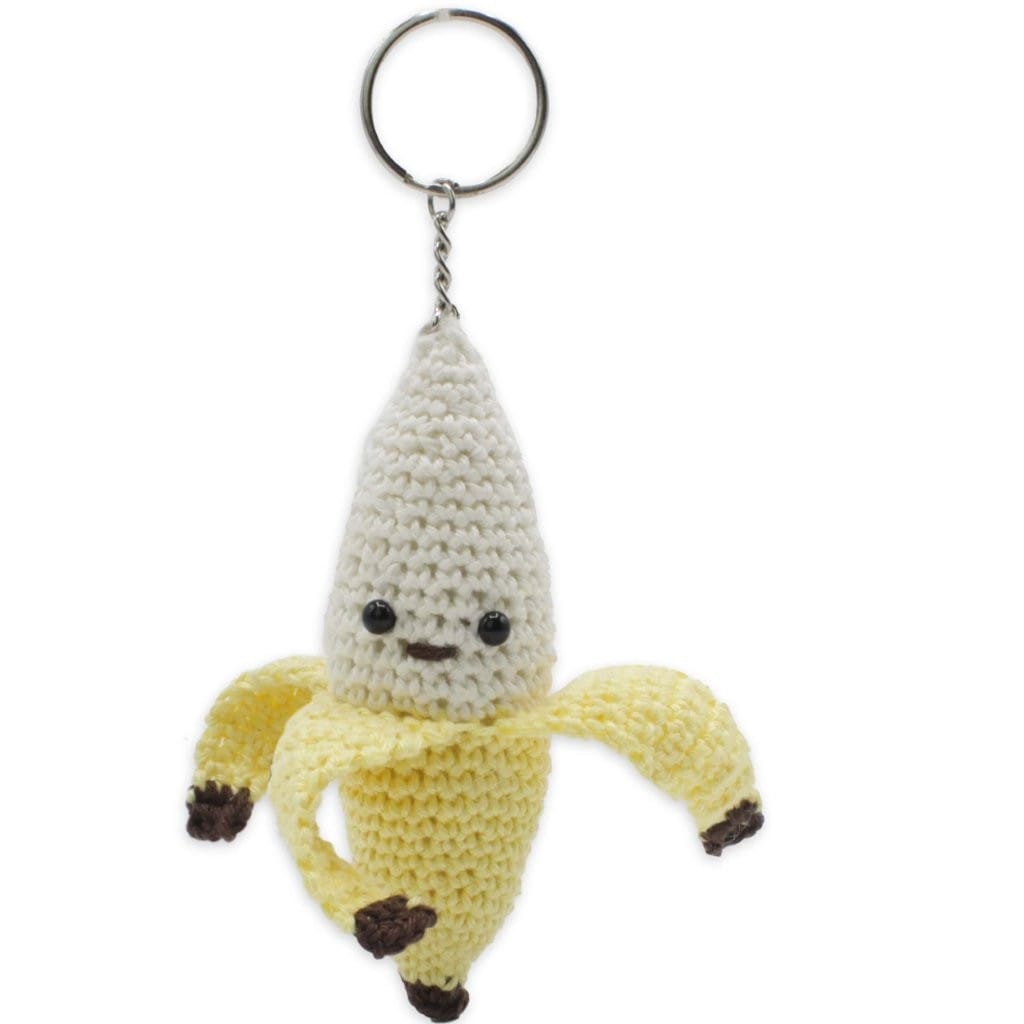Füge deiner Tasche mit dem Banane-Taschenanhänger ein lustiges Detail hinzu. Jede (Schul-)Tasche braucht eine! Dieses Paket enthält hochwertiges Garn aus 100% Baumwolle und alle Kurzwaren, ausser der Häkelnadel, welche du brauchst. Die Banane ist etwa 12 cm gross und wird mit einer 2.5 mm Häkelnadel gehäkelt.