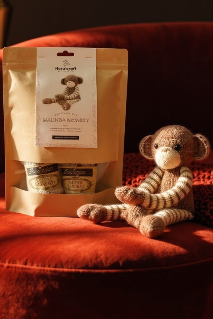Malinda Affe ist Teil der neuesten Tierkollektion von Christel Krukkert! Dieser Affe mit seinen wunderschönen langen Armen und Beinen liebt es, mit seinen Freunden zu kuscheln! Dieses Paket enthält eine Anleitung, hochwertiges meliertes Garn und alle Materialien, die für den Anfang benötigt sind (ohne Stricknadeln). Malinda Affe ist ca. 37 cm gross und wird mit 3.0 mm Nadeln gestrickt.