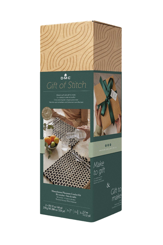 Stellen Sie stilvolle Tischsets in Schwarz und Weiss in Handarbeit her. Ein durchdachtes Geschenk für ein neues Zuhause. Schleife und Geschenkanhänger inklusive. Box als Geschenkverpackung wiederverwenden. Die perfekte Wahl für ein aufmerksames Geschenk für neue Hausbesitzer. Dieses Set aus zwei einfarbigen Tischsets verleiht jedem Esstisch Textur und Stil. Dieses Set wurde als Teil unserer Gift of Stitch-Reihe entwickelt und ist ein wunderbares Geschenk, wie auch immer Sie sich entscheiden, es zu verschenken. Gestalten Sie die Tischsets selbst und verschenken Sie Ihre fertigen Kreationen als einzigartiges neues Zuhause. Oder verschenken Sie das Set selbst, damit andere die Freuden des Häkelns entdecken können.