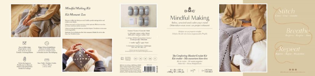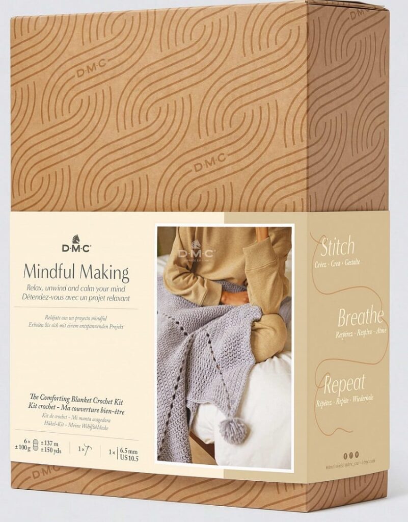 Entdecken Sie ein Hobby, das Ihrer Seele gut tut. Machen Sie es sich gemütlich mit meditativen Maschen und häkeln Sie sich eine kuschelige Decke. Die Schritt-für-Schritt-Anleitung dieses Häkelsets ermöglicht es Ihnen, sich völlig auf das Hier und Jetzt zu konzentrieren.
