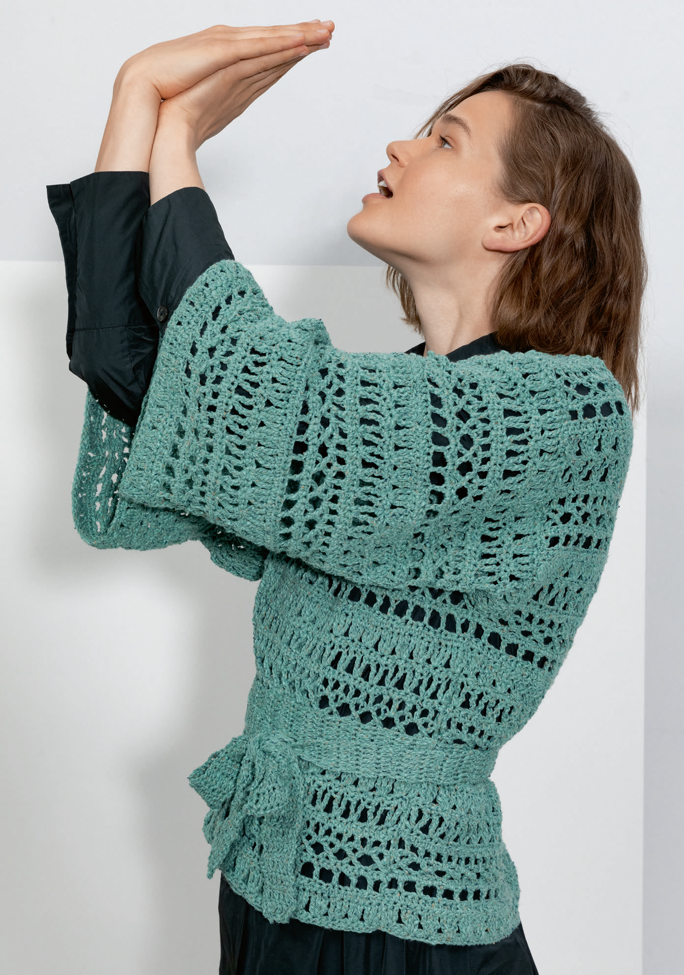 - 1/2 Knäuel Garn deiner Lieblingsfarbe (Wir haben dafür Lang Yarns MERINO 150 – 197 in der Farbe «Lila Hell» verwendet, da es ideal zu luftigen Sommerkleidern passt.)