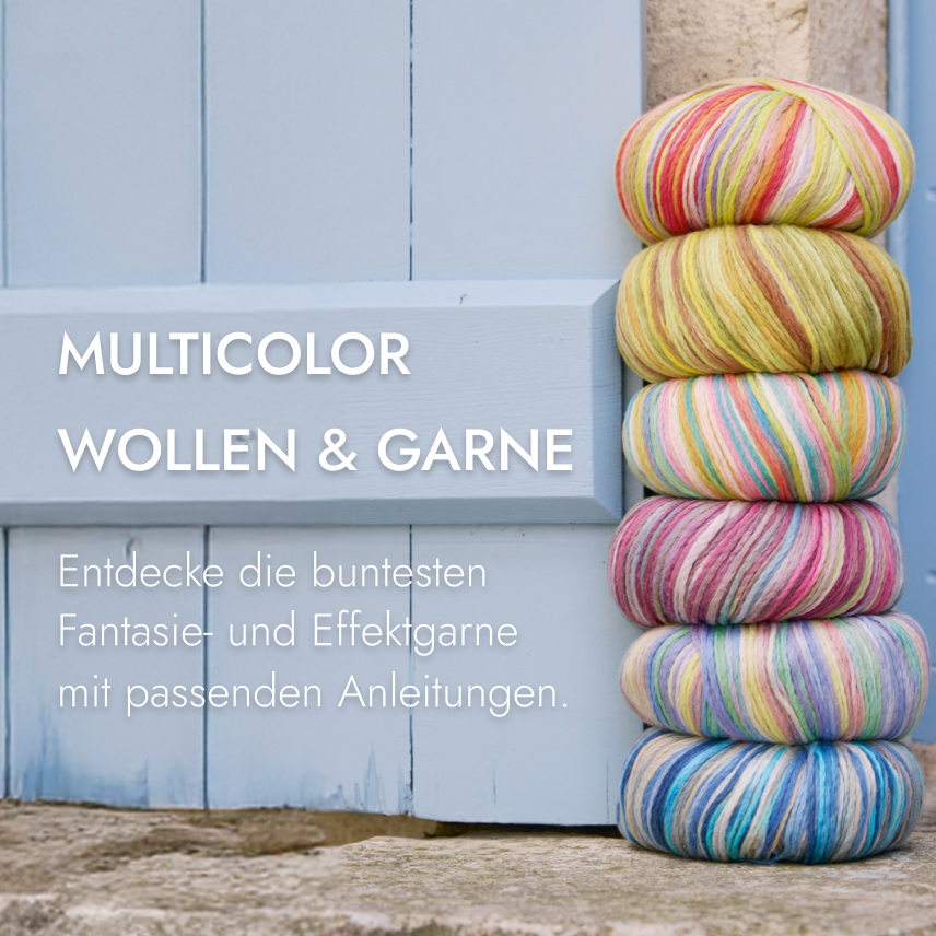 Die spannenden Effekte dieser Garne und Wollen entstehen durch das Verzwirnen mehrerer Fäden verschiedener Farben oder sogar verschiedener Materialien, so dass ein toller multicolor Effekt entsteht.
