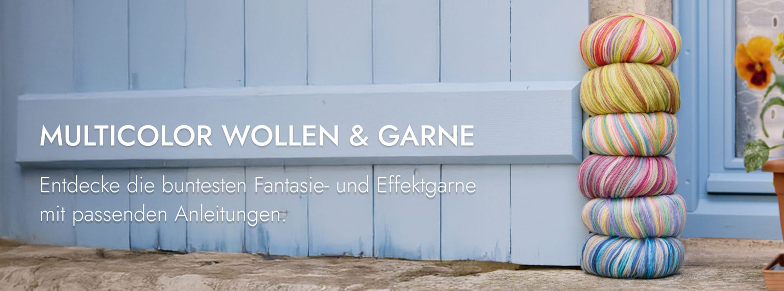 Bei diesen Garnen und Wollen entsteht der tolle mutlicolor-Effekt durch reine Farbverläufe. Im Vergleich zu anderen Fantasiegarnen, entsteht hier ein schön fliessender Verlauf, der nicht durch zusätzliche Effekte wie Punkte unterbrochen ist.