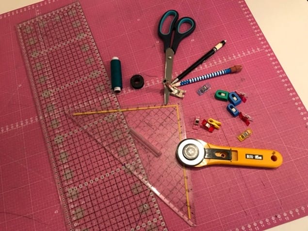 - 12cm Baumwoll- oder Canvas Stoffe ganze Breite, also ca. 140-160cm, wenn Du Reststücke hast, kannst Du diese auch zusammennähen, wir machen dafür eine Naht im 45°-Winkel der Stoffbahnen