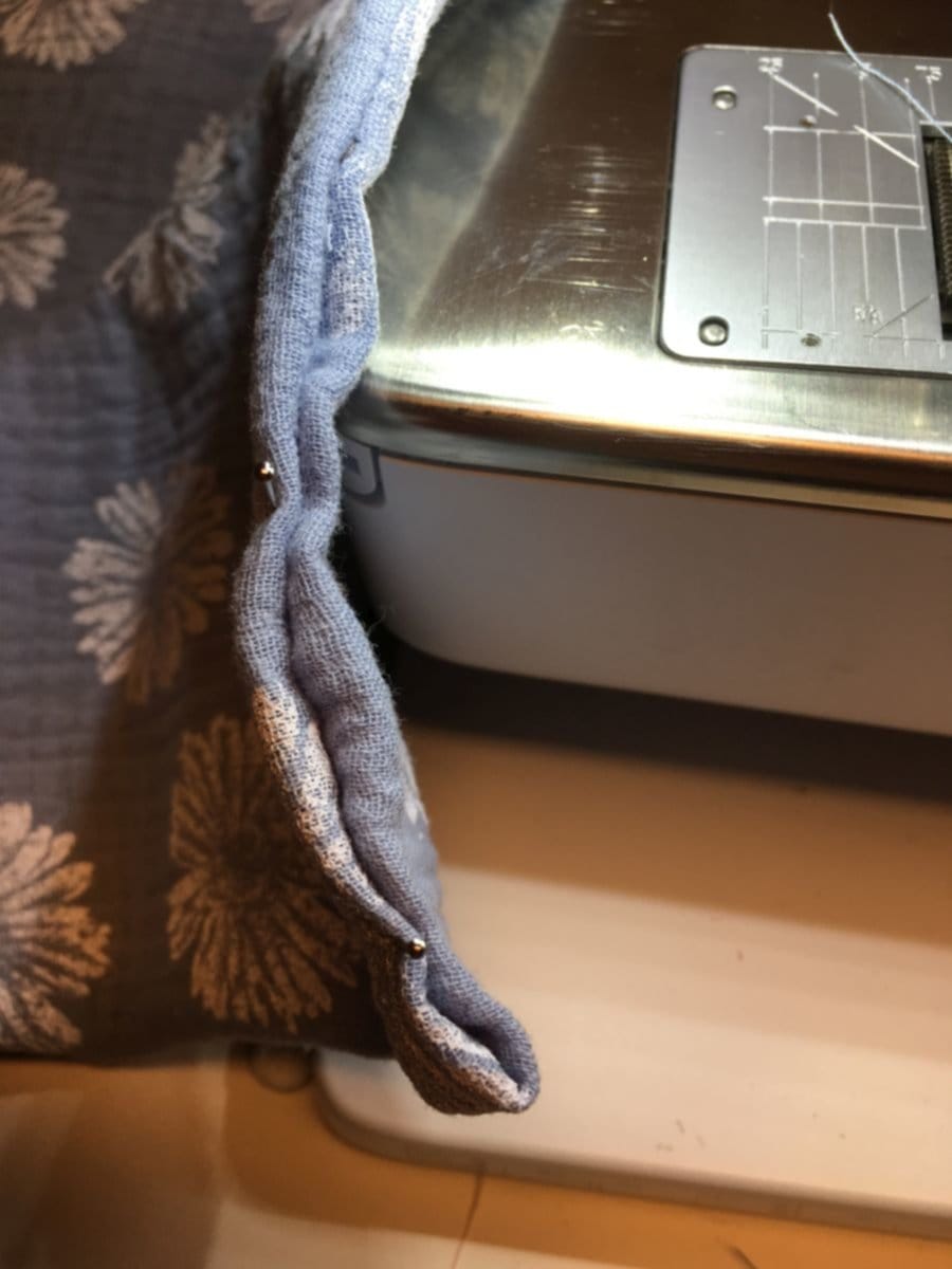 - Beide Stück Musseline rechts auf rechst aufeinander stecken und rundum zusammennähen: