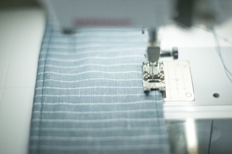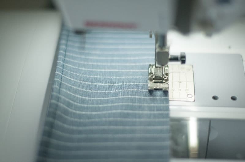 Stoffstücke rechts auf rechts legen, zusammenstecken und bei 0,5mm mit Stichlänge 2,8 absteppen.