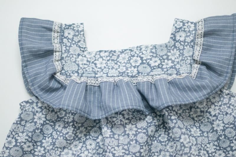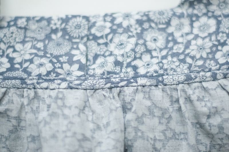 Auch beim Armausschnitt und dem gerüschten Ärmel habe ich einen Einfass gemacht. Aber auch hier wäre es möglich gewesen mit der Overlock oder einem Zickzack zu versäubern.