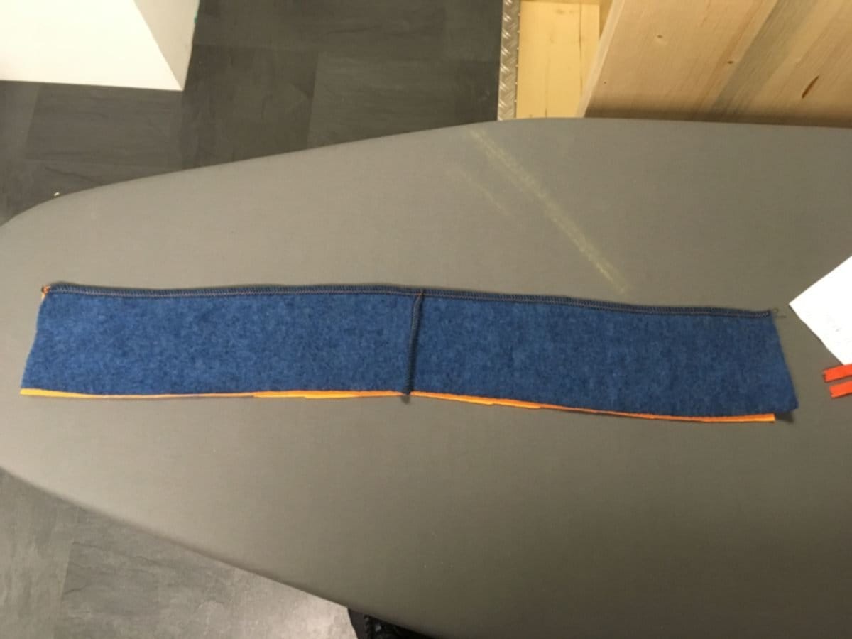 - Besatz ebenfalls hinten in der Mitte rechts auf rechts zusammennähen