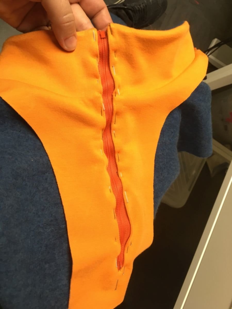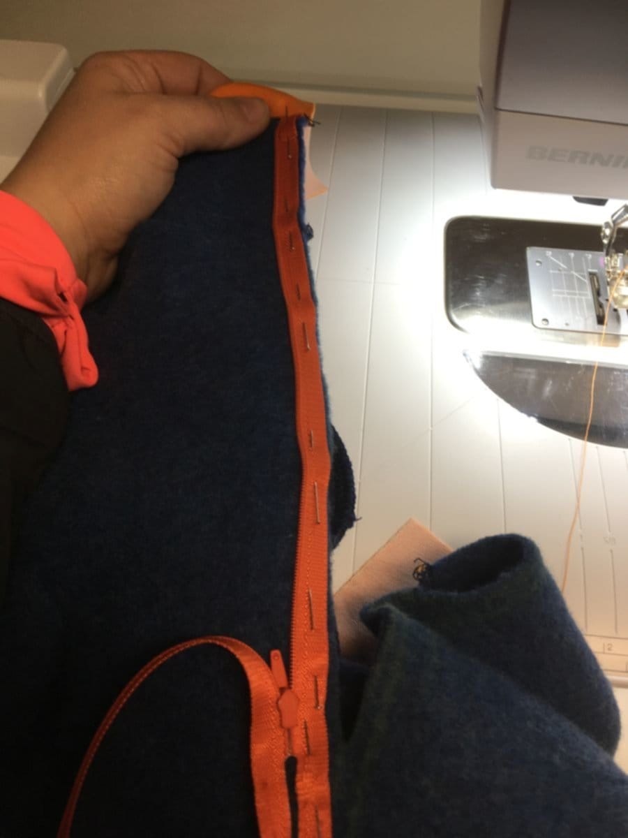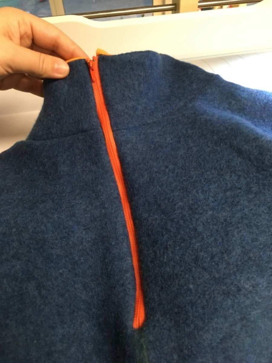 - Nun noch die unteren Enden des Reissverschlusses mit der Nahtzugabe des Pullis zusammennähen (2-3x hin- und her)