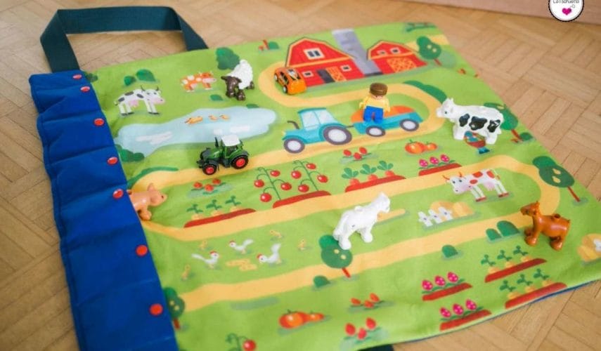 Bauernhof- und Autospielteppich zum Mitnehmen