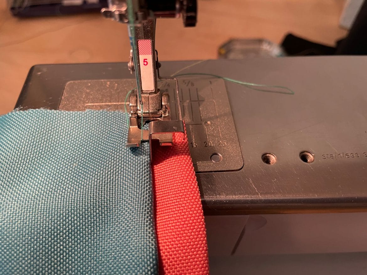 Ich habe dazu den weichen und wasserabweisenden Outdoor-Stoff von Stoffwald verwendet, den es ihn ganz vielen Farben gibt. Es lassen sich also tolle Farbkombinationen zusammenstellen.
