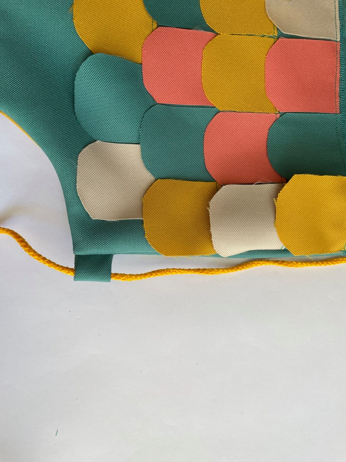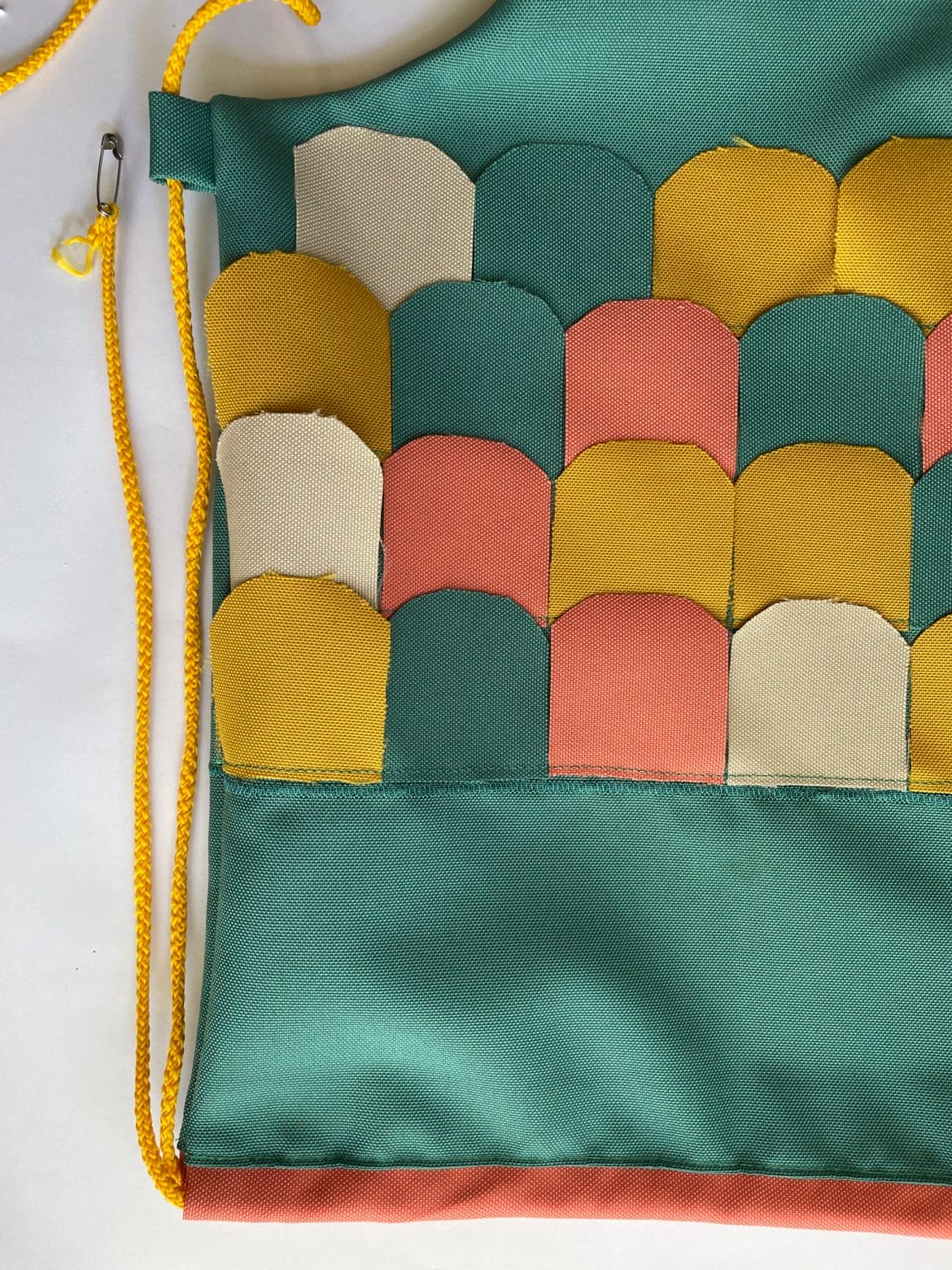 Materialbedarf: Der Turnsack ist gänzlich aus dem Outdoor Waterproof Uni von welchem du dir aus 3-4 Farben deinen Fisch farblich zusammenstellst. Dieser Stoff ist um einiges weicher als ich es erwartet habe und somit sehr geeignet für den Turnsack. Ausserdem ist er wasserabweisend. Der Stoff kann gut bei 30 Grad gewaschen werden. Aber ja nicht bügeln.