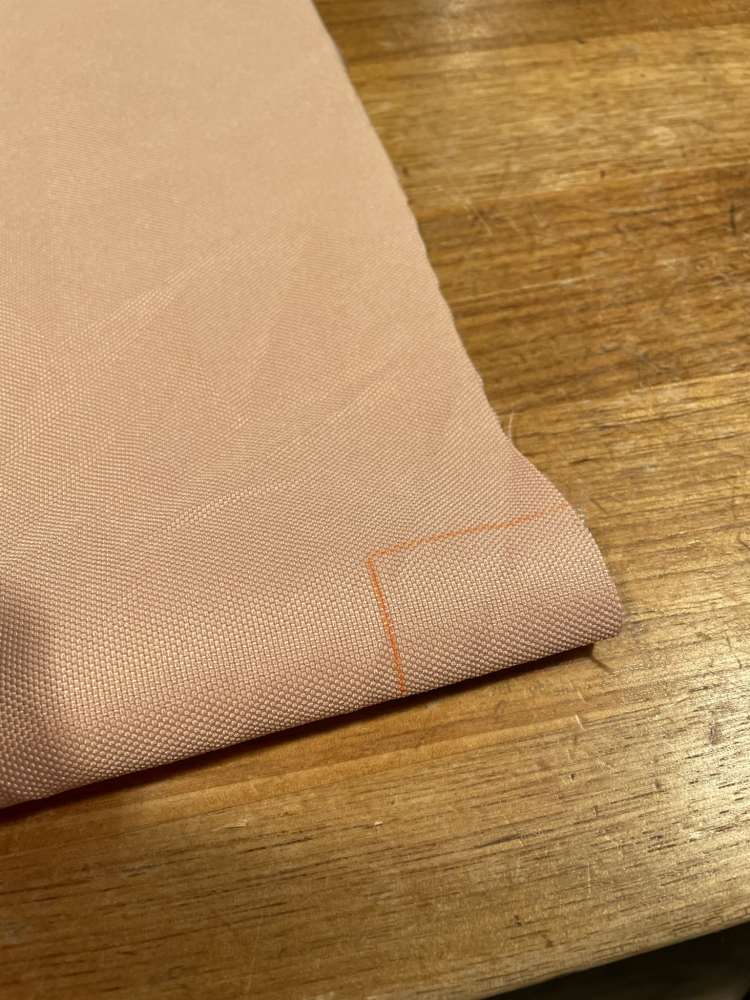 Hier wurde die Ecke in der Mitte, beim Stoffbruch, markiert.