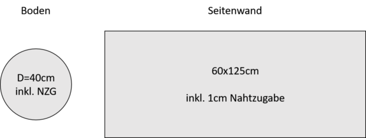 - Seitenwand: ein Rechteck in der Grösse von 125cm x 60cm