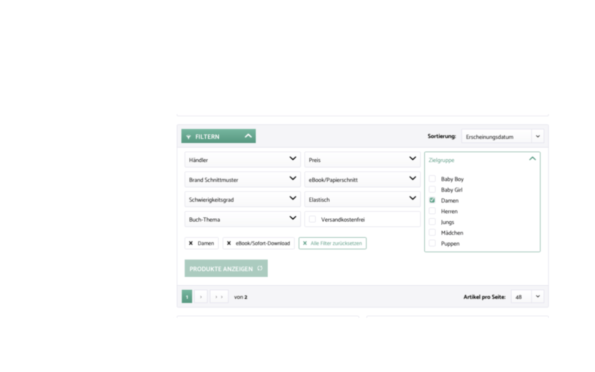 Ganz viele tolle ebooks findest Du im Stoffwald. Mit der Filterfunktion kannst Du Dir die Schnitte anzeigen lassen, die Euch interessieren.
