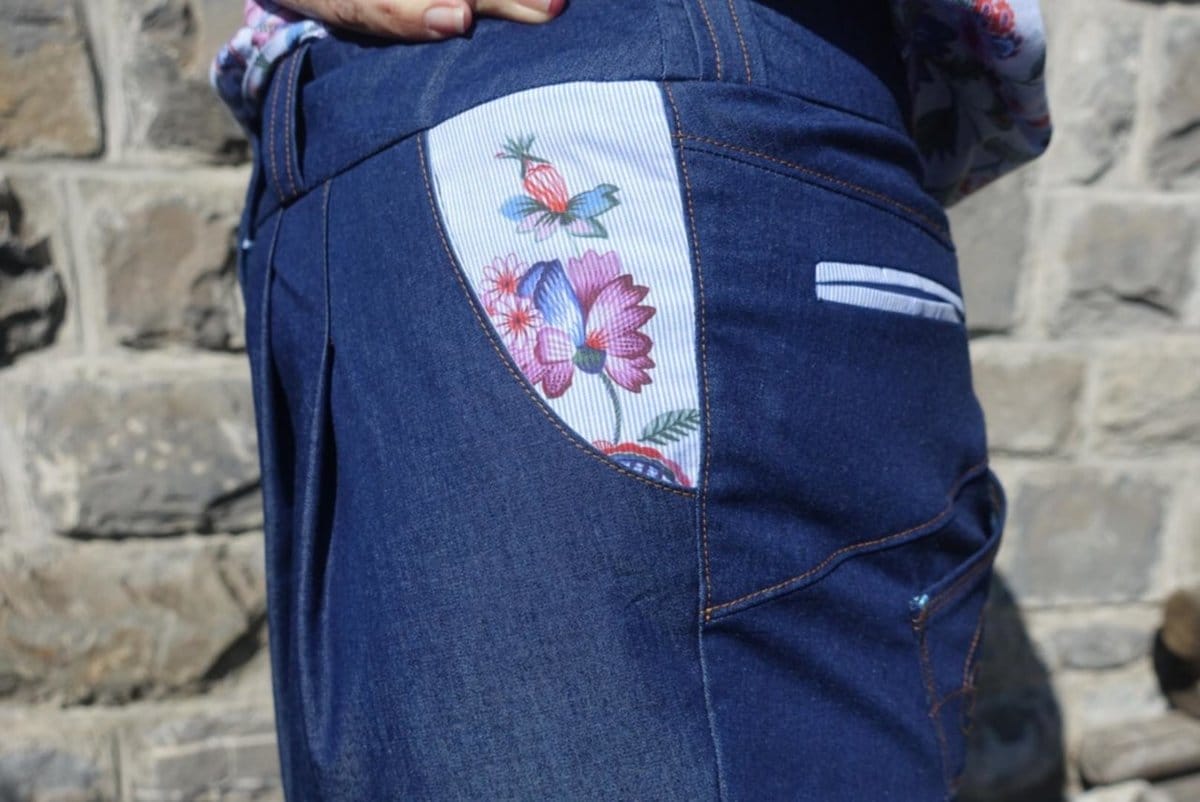 Auch farbliche Akzente lassen sich anhand von Eingriffstaschen setzen. Sogenannte “Taschenspiegel” werten Deine Hose oder Deinen Rock garantiert auf. Nutze hierfür einen bunten oder gemusterten Stoff, um Kontraste zu setzen.
