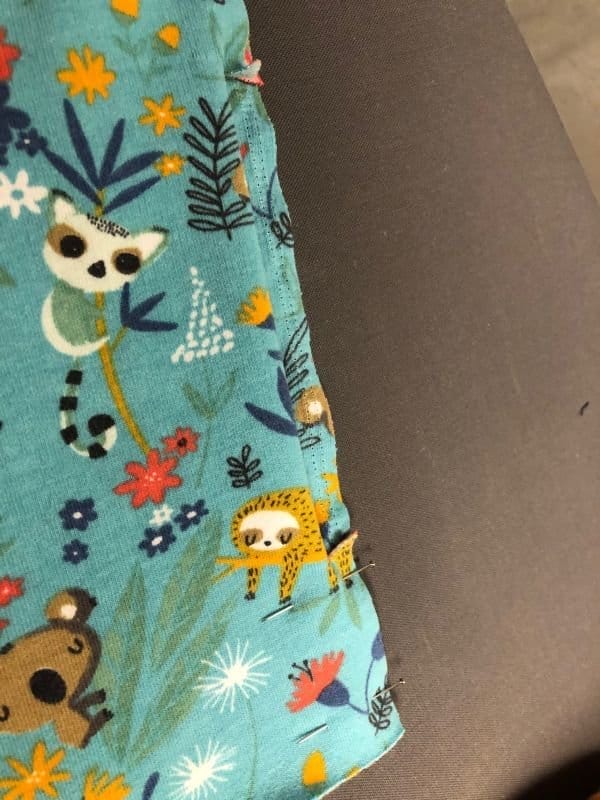 Vernäht wurde hier ein Design Sweat “Lazy” von Hanabi mit dem Faultier und ein Jacquard Jersey mit Lurex-Glitzer von Albstoffe von Nähloft 59.