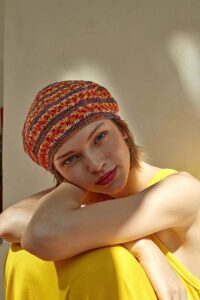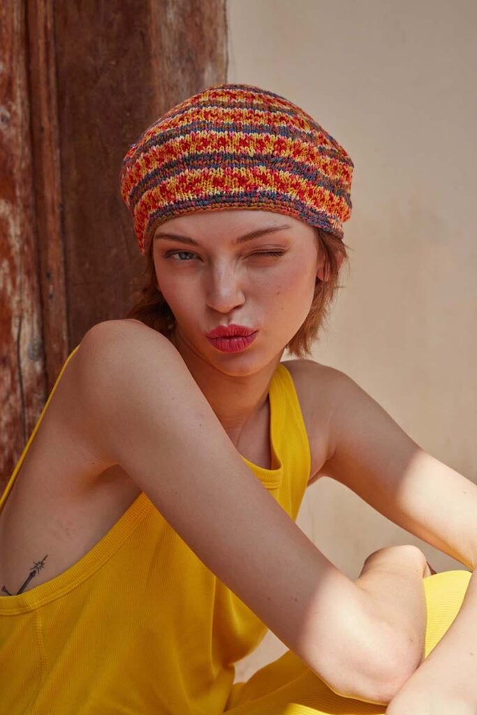 Will you go for the knitted or the crocheted version of this trendy hat? The knitted version gives a funny stripe effect. If crochet is more your thing, then crochet the FLOW WITH IT hat.