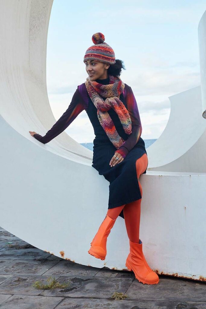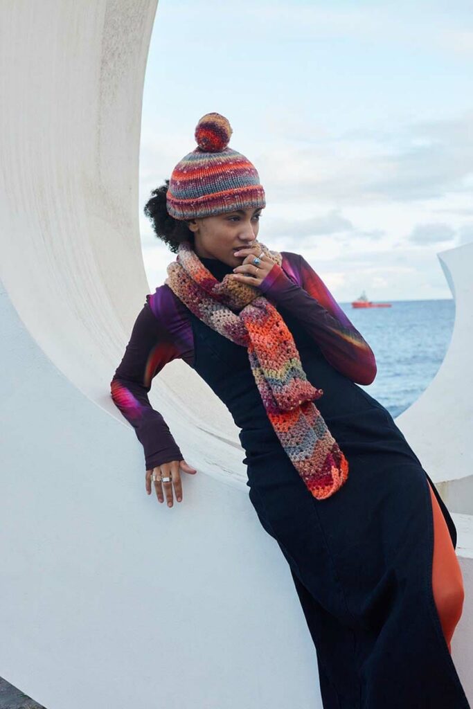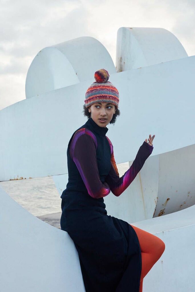 A too cute hat with a very colorful pom pom. The hues make it look like there are little snowflakes on it. A hat for when you dream of snow.