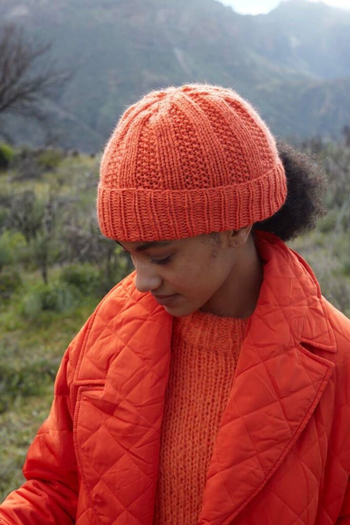 This cute hat is perfect for bad hair days. It also looks super cute on the «ROAD TRIP» cardigan because it uses the same stitches. They resemble small stones piled up just like steppingstones.