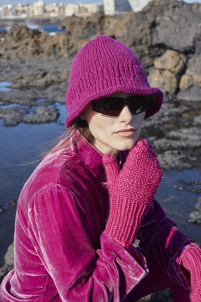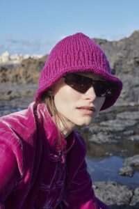 Let’s go to a place where the sun kisses the ocean…. This hat will protect you when needed when you take long beach walks during cold winter days. The hat gives a slight «bucket hat» feel but retains its femininity because of the beautiful knit stitches
