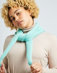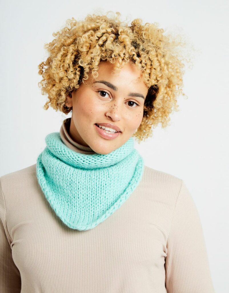 Du hast noch kein gestricktes Halstuch? Na dann wird es Zeit! Diese einfache, KOSTENLOSE Anleitung hat den Kuschelfaktor eines Schals mit dem Chic eines Halstuchs. Knote das dreieckige Tuch vorne oder hinten zusammen und lass dir immer neue Outfit-Ideen einfallen.