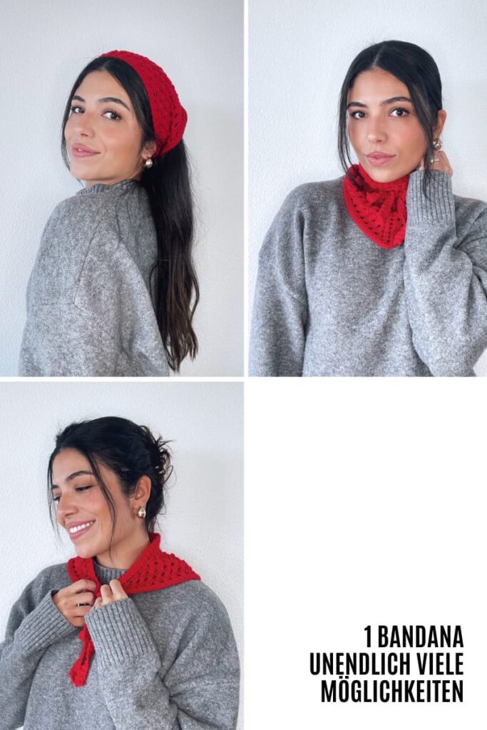 An der langen Seite ist das Bandana 56cm lang. Die Bändel für die Masche sind je 35cm lang.