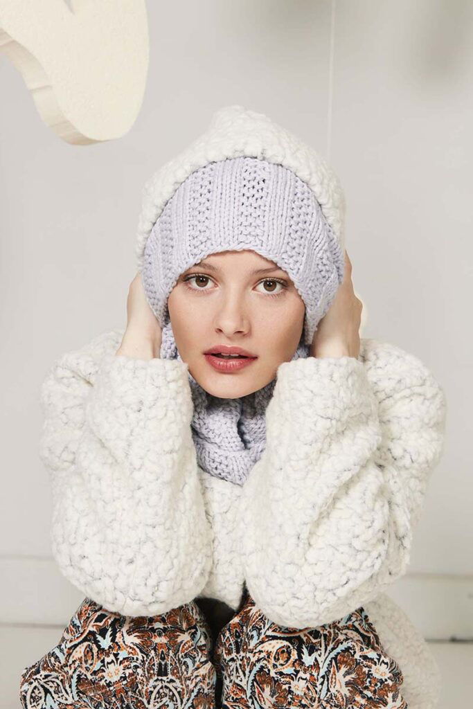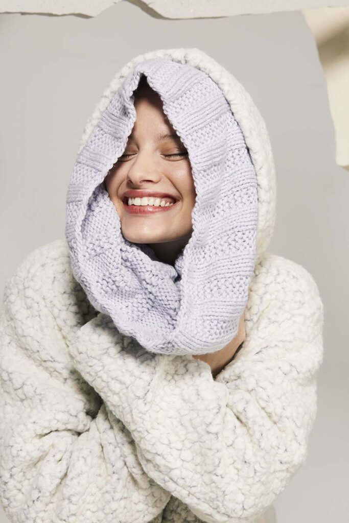 Sie haben noch nicht viel Strickerfahrung und möchten langsam anfangen…. Dann ist dies das perfekte Projekt für Sie. Mit dieser Kapuze werden Sie im Handumdrehen auf Wolken gehen. Zudem kann sie auch einfach als Schal verwendet, wenn es mal nicht so kalt ist.