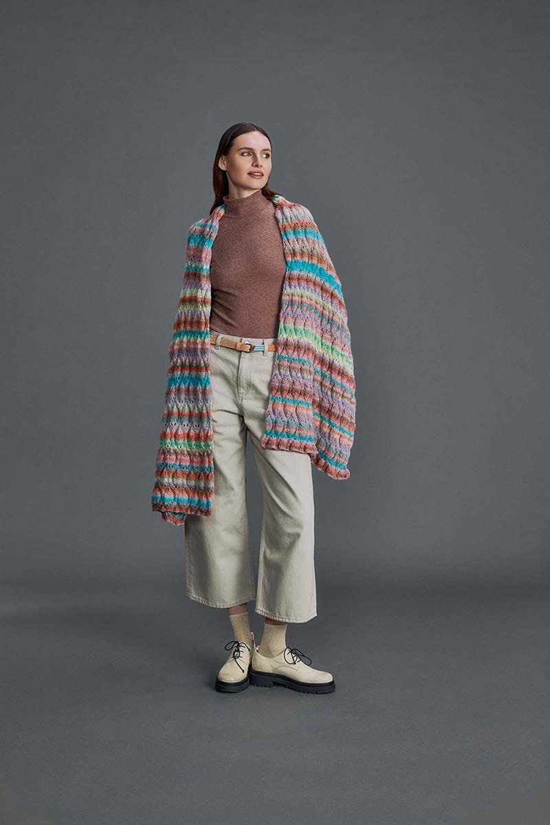 - PTO 027 – mit klar definiertem Muster. Auf den ersten Blick fast schlicht, offenbart das Tuch beim Stricken nach Anleitung echte Tiefe und wirkt dadurch doch sehr modern. Garn LINELLO trägt seinen Teil dazu bei, als Mischung aus Leinen, Baumwolle und Viskose.
