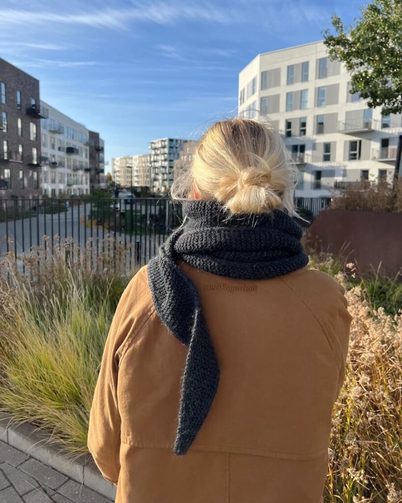 Der Sophie Shawl wird in Reihen in einem Stück kraus rechts mit I-Cord Rändern von Spitze zu Spitze gearbeitet.