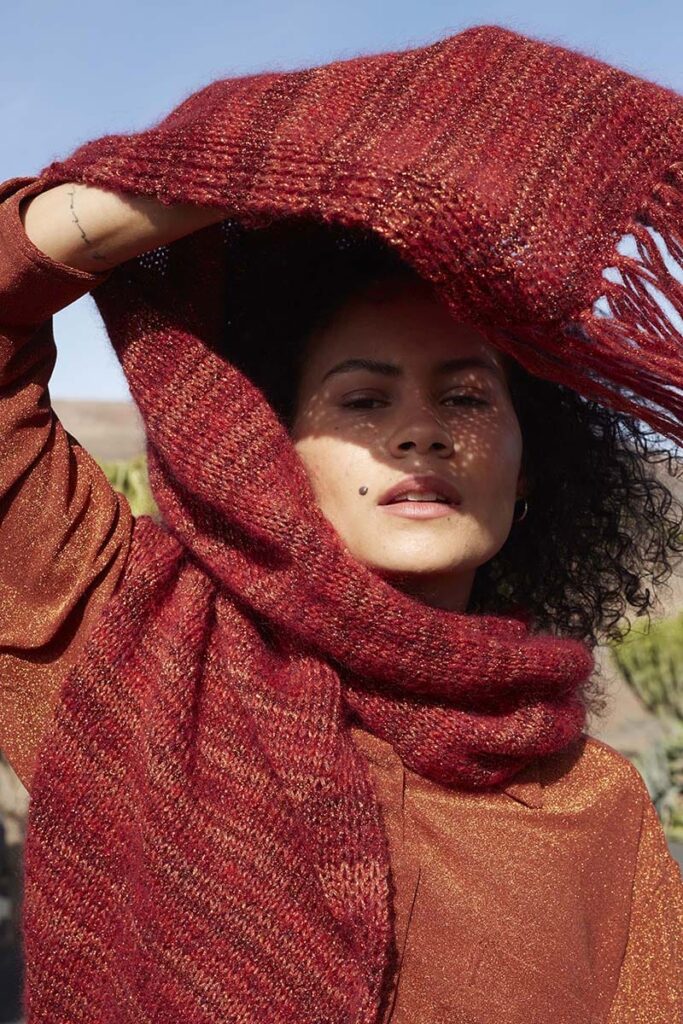 Fifty shades of red and brown intertwine in this exquisite scarf, allowing them to blend and play together, akin to pigments on an artist’s palette. Witness the harmonious fusion of colors, each hue contributing to a masterpiece to draped around your neck.