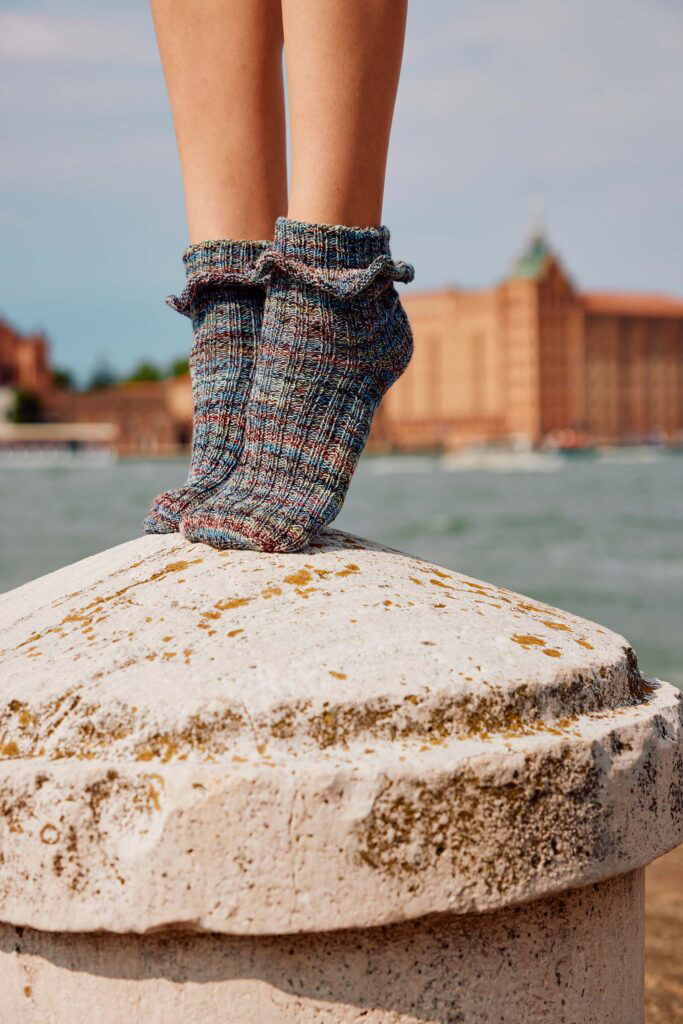 Light and playful, SERENADE is a sock pattern with a flirty frill that dances at the ankle. Simple to knit but full of charm, it adds a touch of whimsy to your everyday wardrobe.